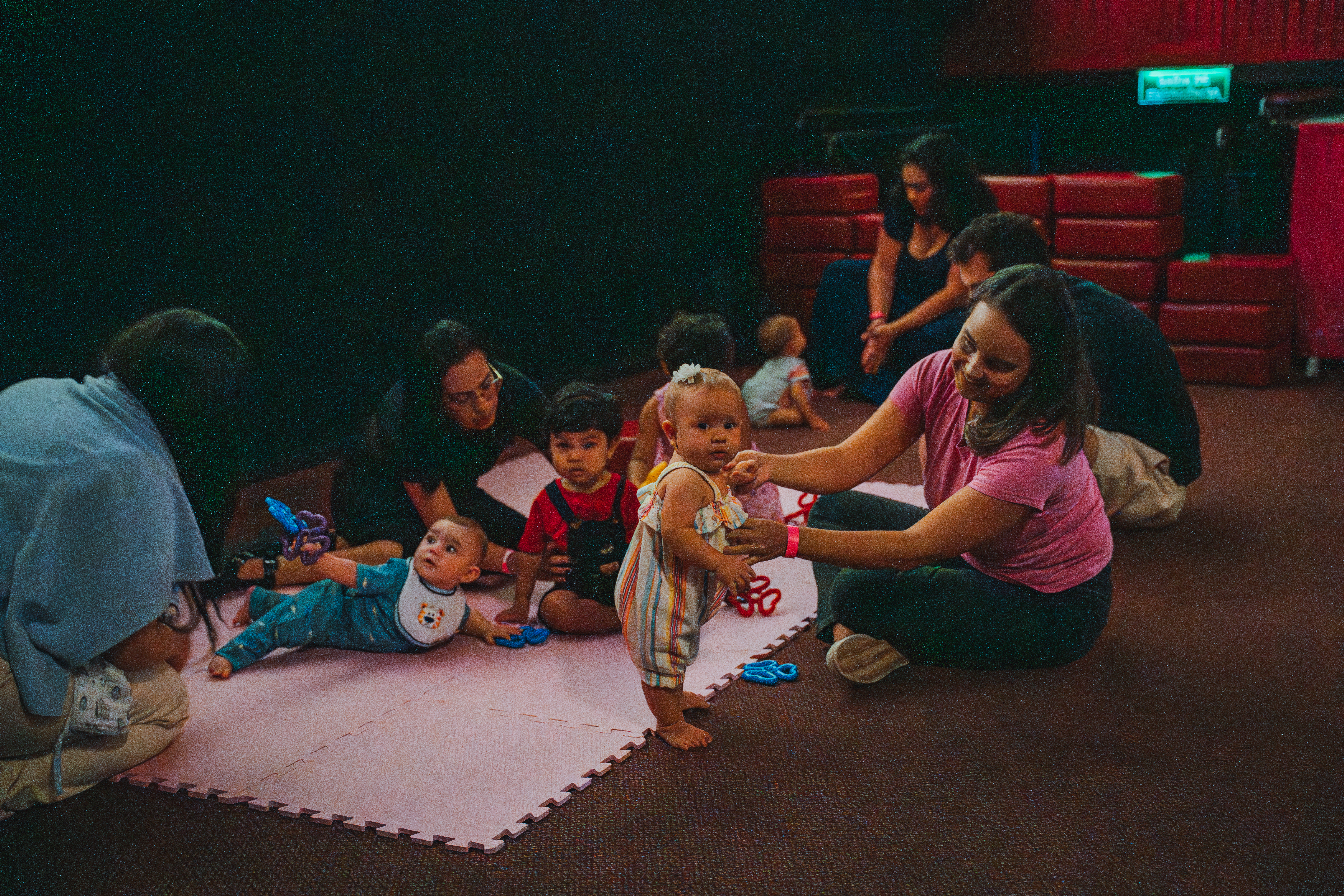 - Presença de voluntárias CineMaterna, que organizam a sessão e acolhem as famílias com cuidado e carinho.